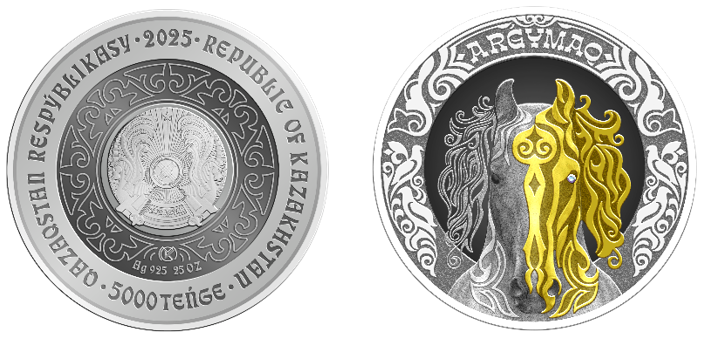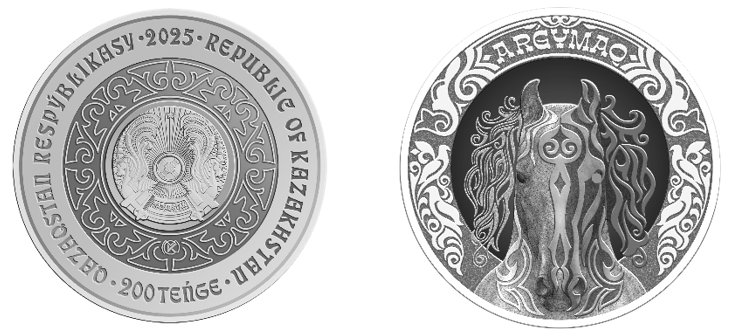 Монета символизирует священного аргымака – одно из главных животных в тюркской культуре, олицетворяющее единство человека и природы. Ее дизайн основан на сочетании натуралистического и трафаретного изображения животного, выполненного в "сакском стиле".