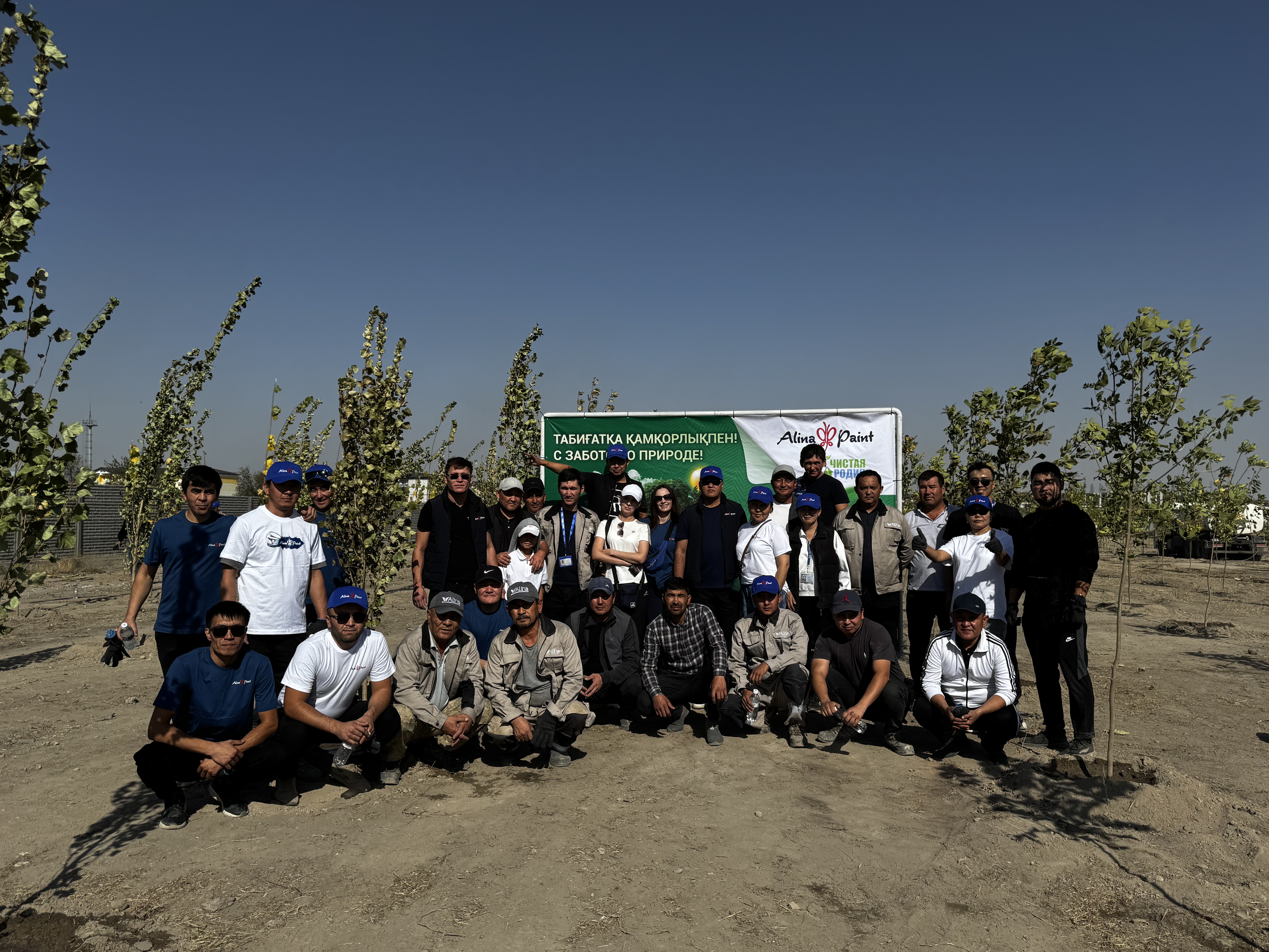 Alina Group 27 қыркүйекте Тараз қаласы күнін мерекелеу аясында Alina Paint эко-бояулар брендінің қамқорлығымен Ұлы Дала (Әулие ата) жаңа ауданындағы аумақтарды көгалдандыру бойынша ауқымды экологиялық акция өткізді.