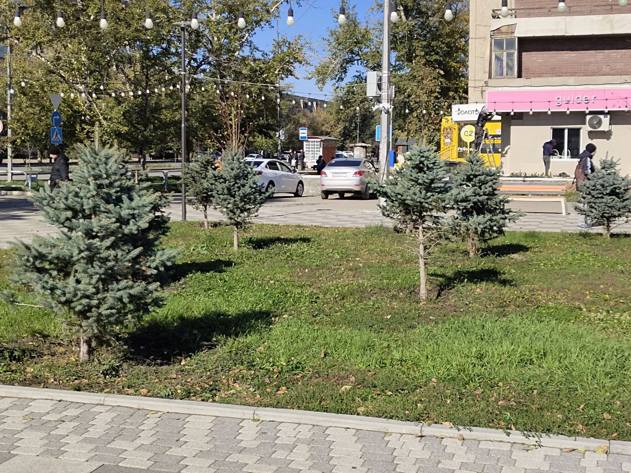 Не обошлось и без приятных деталей. Горожане обращают внимание, что за год ни одно из декоративных деревьев, высаженных на площади Ауэзова, не погибло.