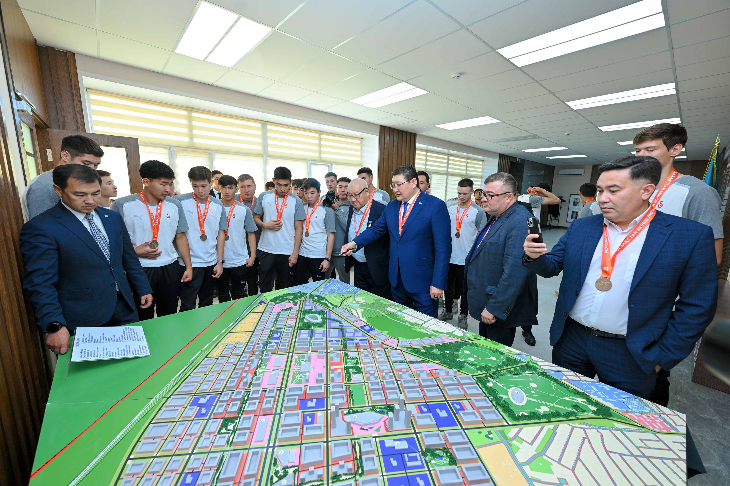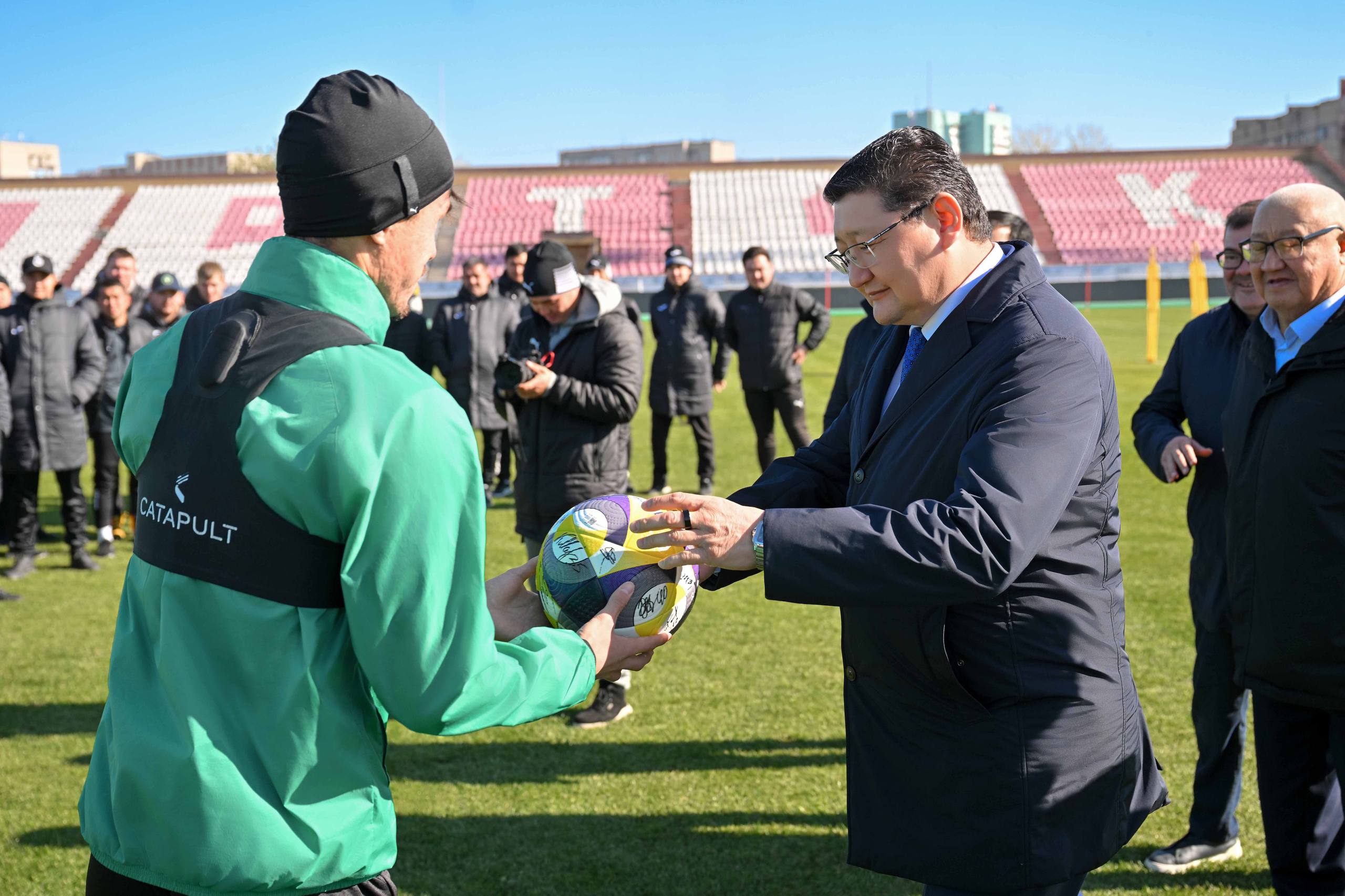 Затем Берик Уали посетил стадион "Спартак" и встретился с игроками и тренерами основной команды "Елімай".