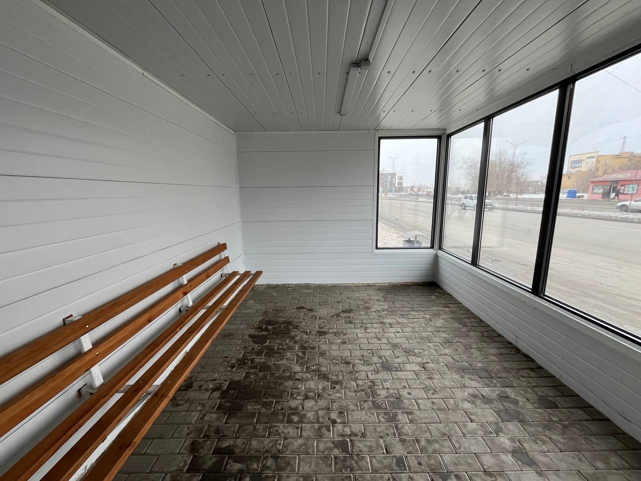 В этом павильоне стоит несколько скамеек, бетонный пол, который быстро остывает. Из утепления – лишь тонкий слой изоляции. Обогрева, как и на предыдущей остановке, нет, поэтому разница внутренней температуры с уличной минимальна.