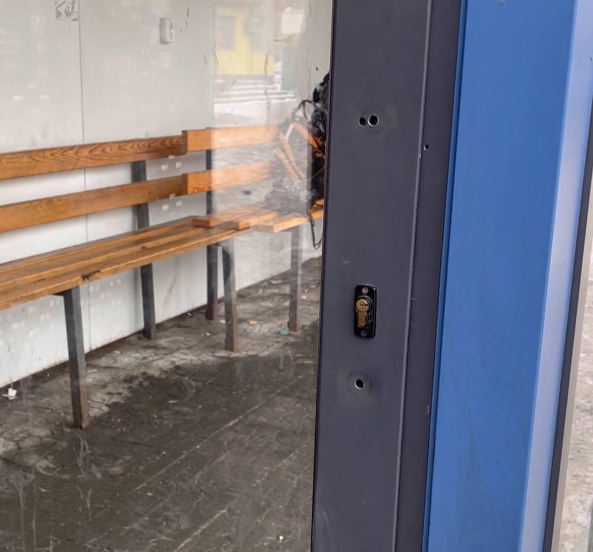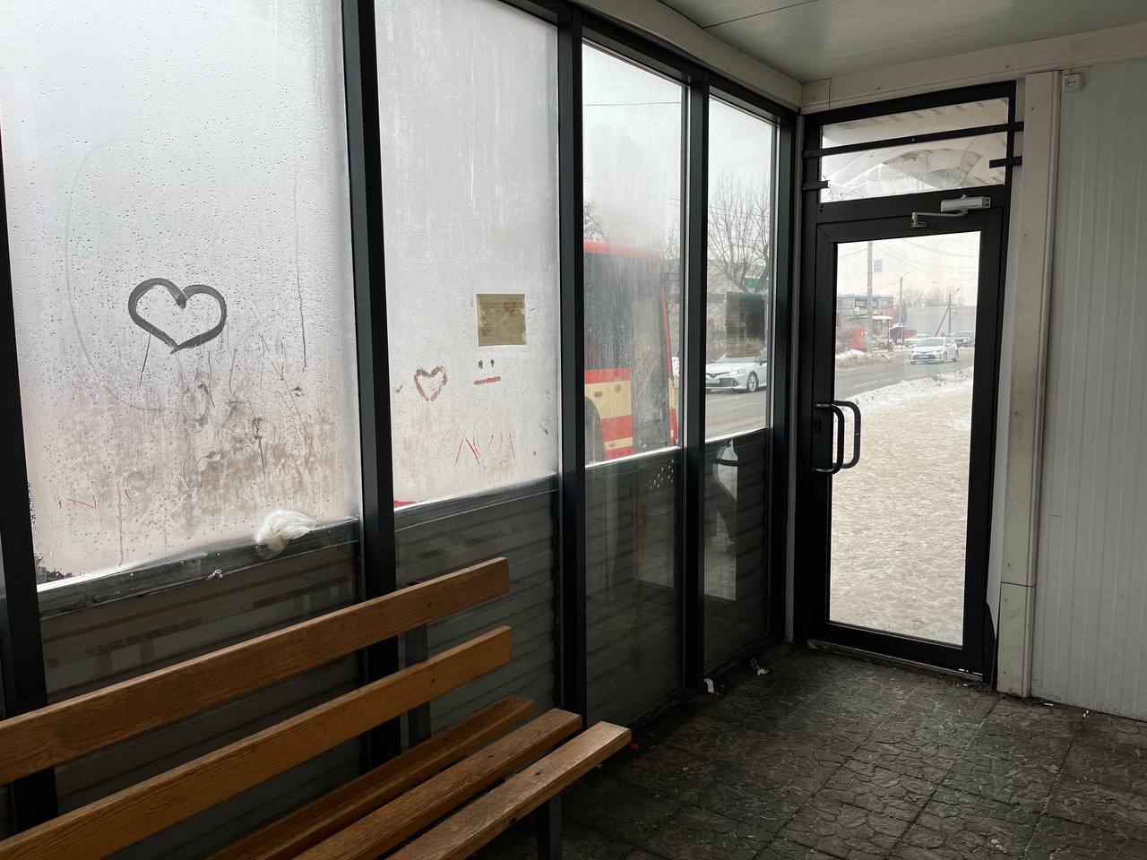 Павильон слабо утеплен, бетонный пол быстро остывает. Стеклянная дверь повреждена, и через щели проникает холод. Отопления нет, из-за чего ожидание автобуса становится некомфортным.