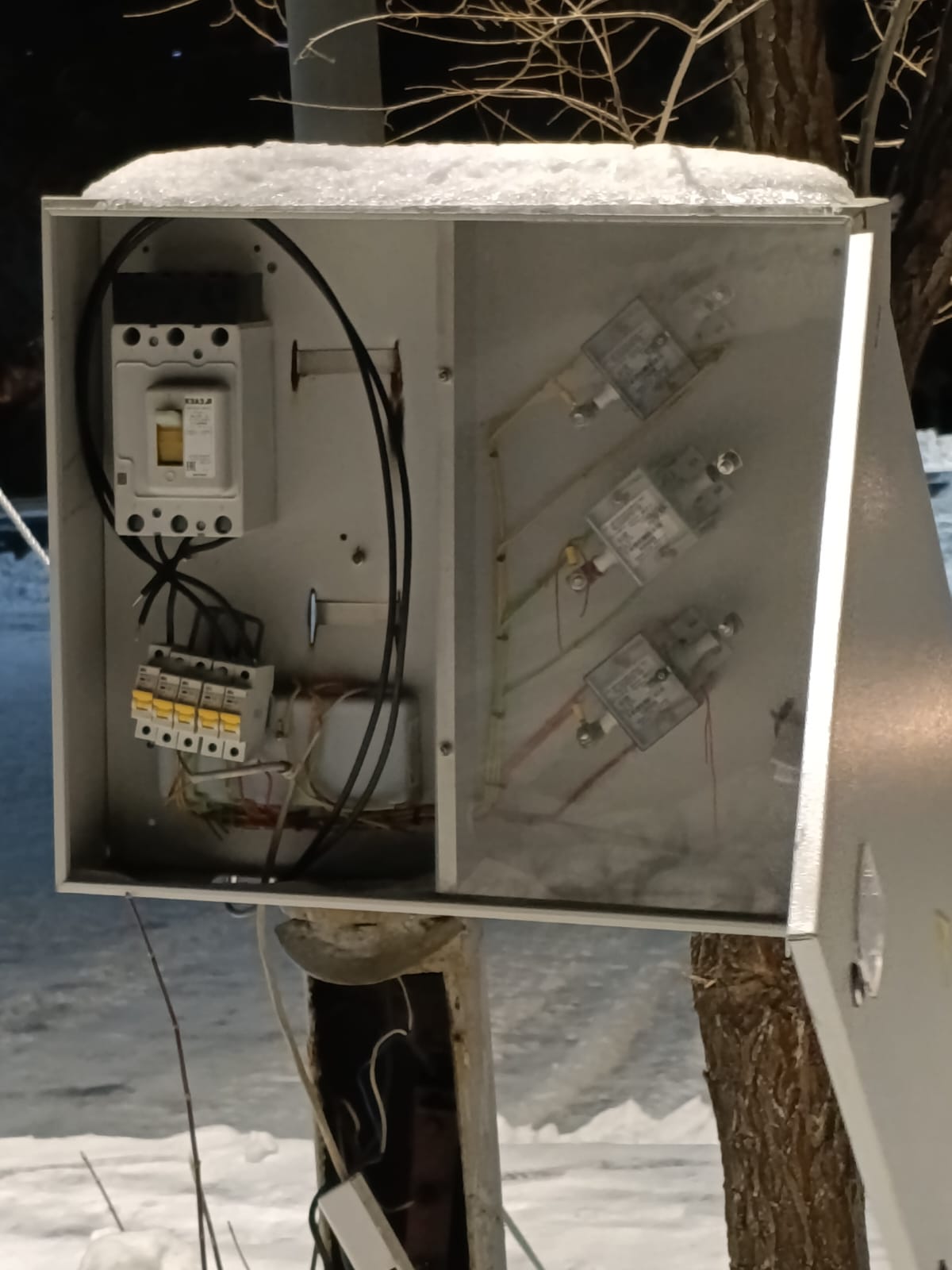 На снимках, которыми поделилась читательница, видно, что дверца электрощитка лежит рядом, сама конструкция наклонена, а электрические элементы никак не защищены от внешнего воздействия.