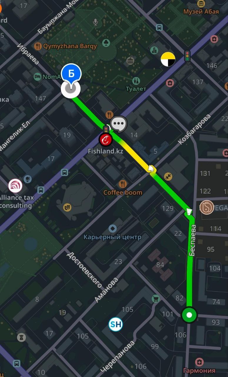 Сейчас перекрыта часть улицы Беспаева от пересечения с улицей Академика Павлова до пересечения с улицей Ибраева. Улица Ибраева − от Беспаева до Мухамедханова и небольшой участок от Мухамедханова до улицы Маңгілік ел.