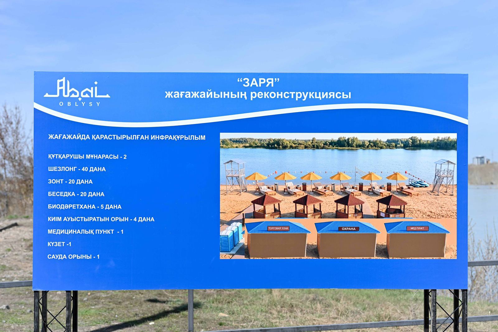 Жоба аясында "Заря" жағажайында бірқатар инфрақұрылымдық жаңарту қарастырылған. Атап айтқанда, 2 құтқару мұнарасы, 40 шезлонг, 20 күннен қорғайтын қолшатыр, 5 биодәретхана, 4 киім ауыстыратын орын орнатылады. Сондай-ақ қауіпсіз шомылуға арналған шектеу буйкалары қойылып, 1 медициналық пункт жұмыс істейді.